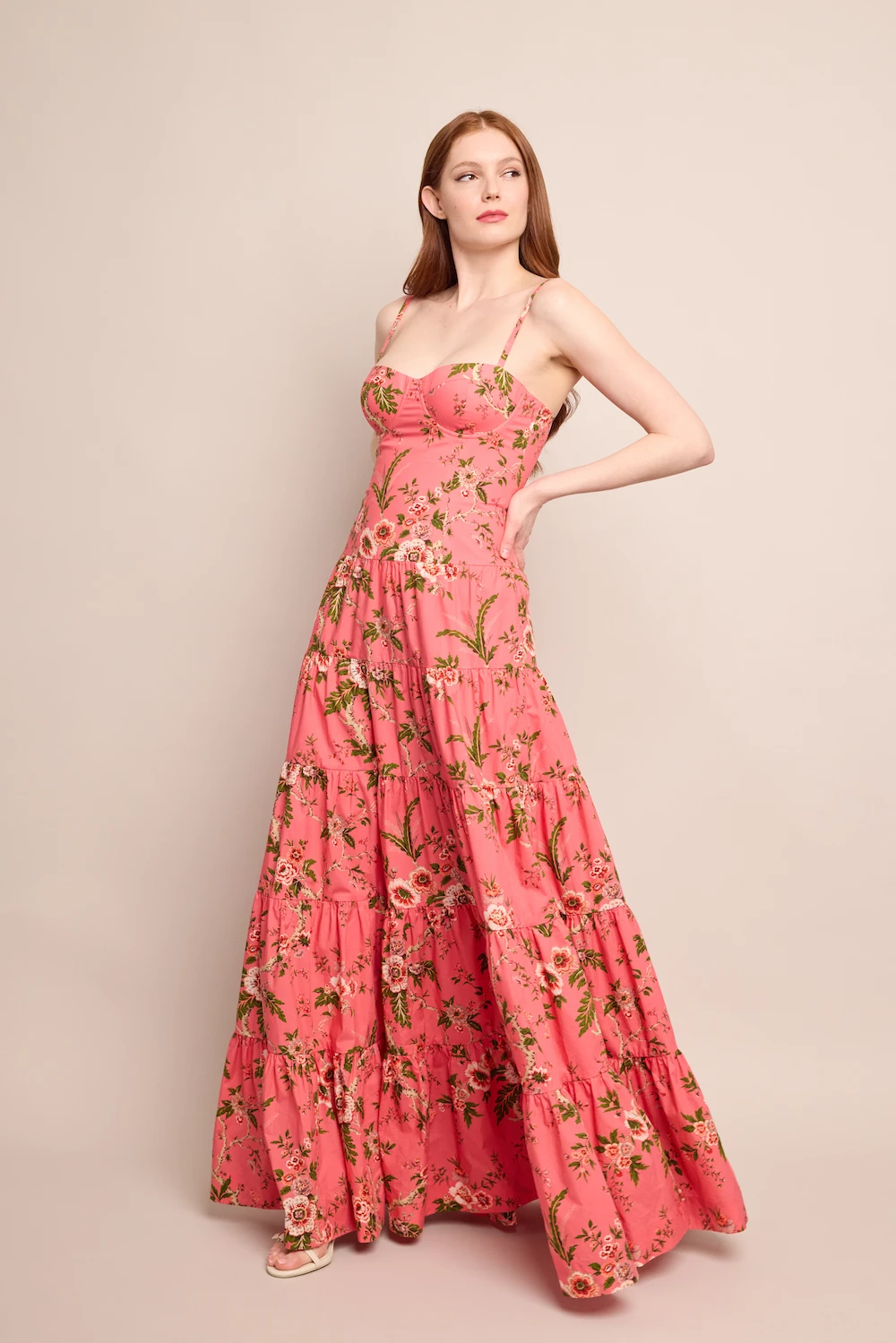 • Drop waist maxi bustier dress with tiered skirt