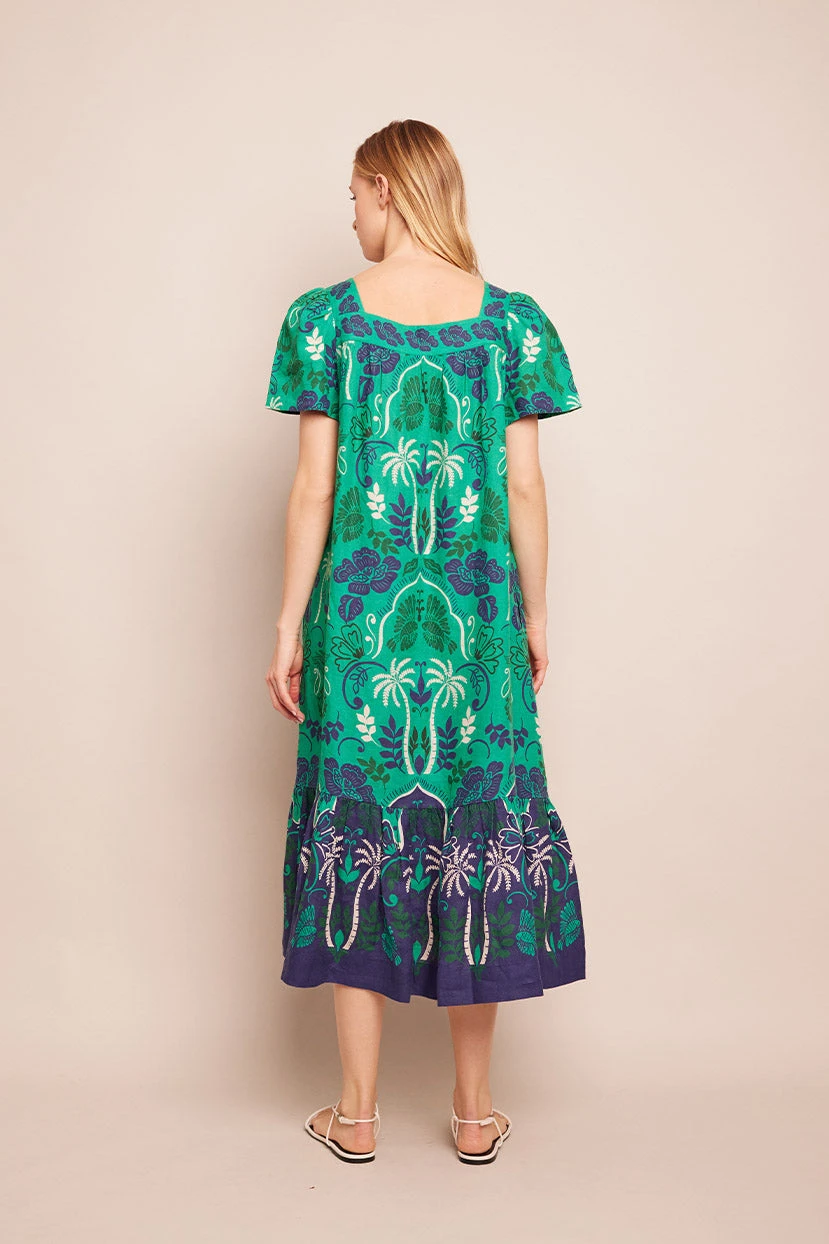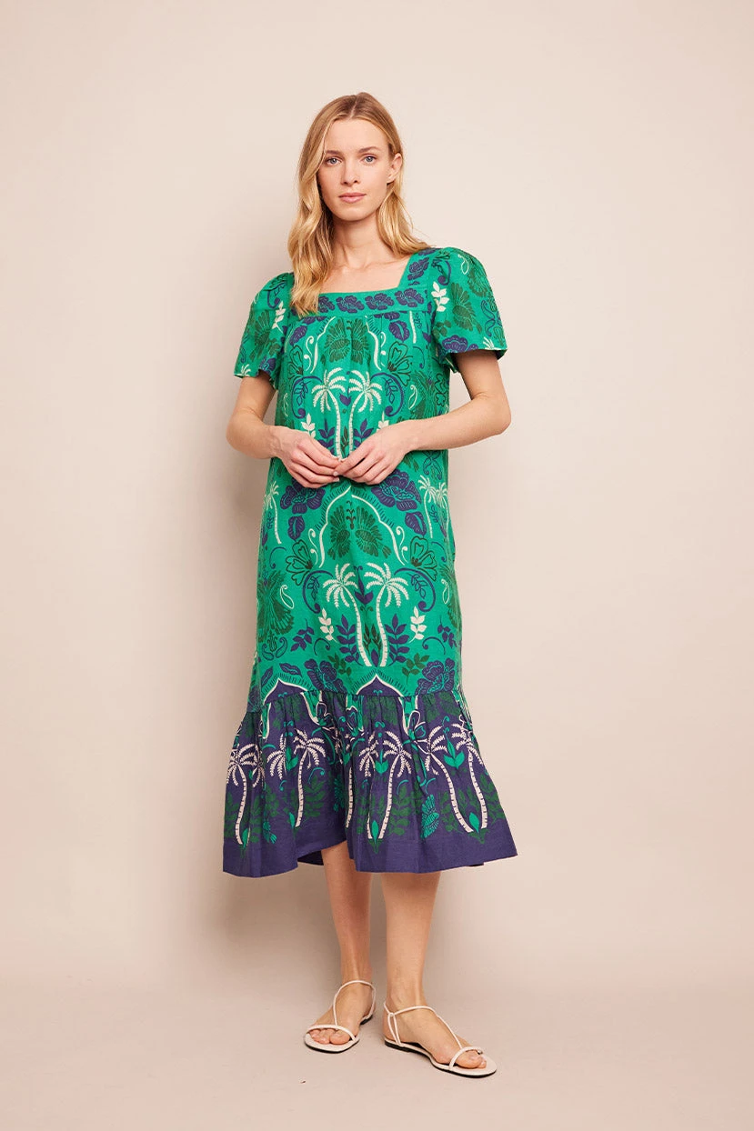 Designed in our elegant island print, the Chani Dress is a fresh and effortless silhouette. The square neckline and puff sleeves add structure and beautifully contrast the flowy linen silhouette with ruffle tier. Pair with knee high boots for a haute bohemian look or team with flats for casual-chic days.