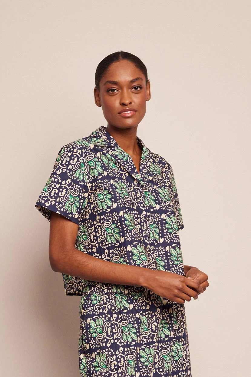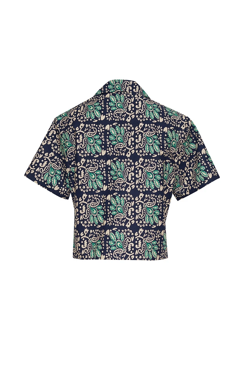 The Kohut Shirt is a tomboy-chic cropped summary up featuring our Le Stampe print. Brilliantly cut for denim or paired with our matching Chase Skirt or Blaze Mini Skirt for a leisure day look.
