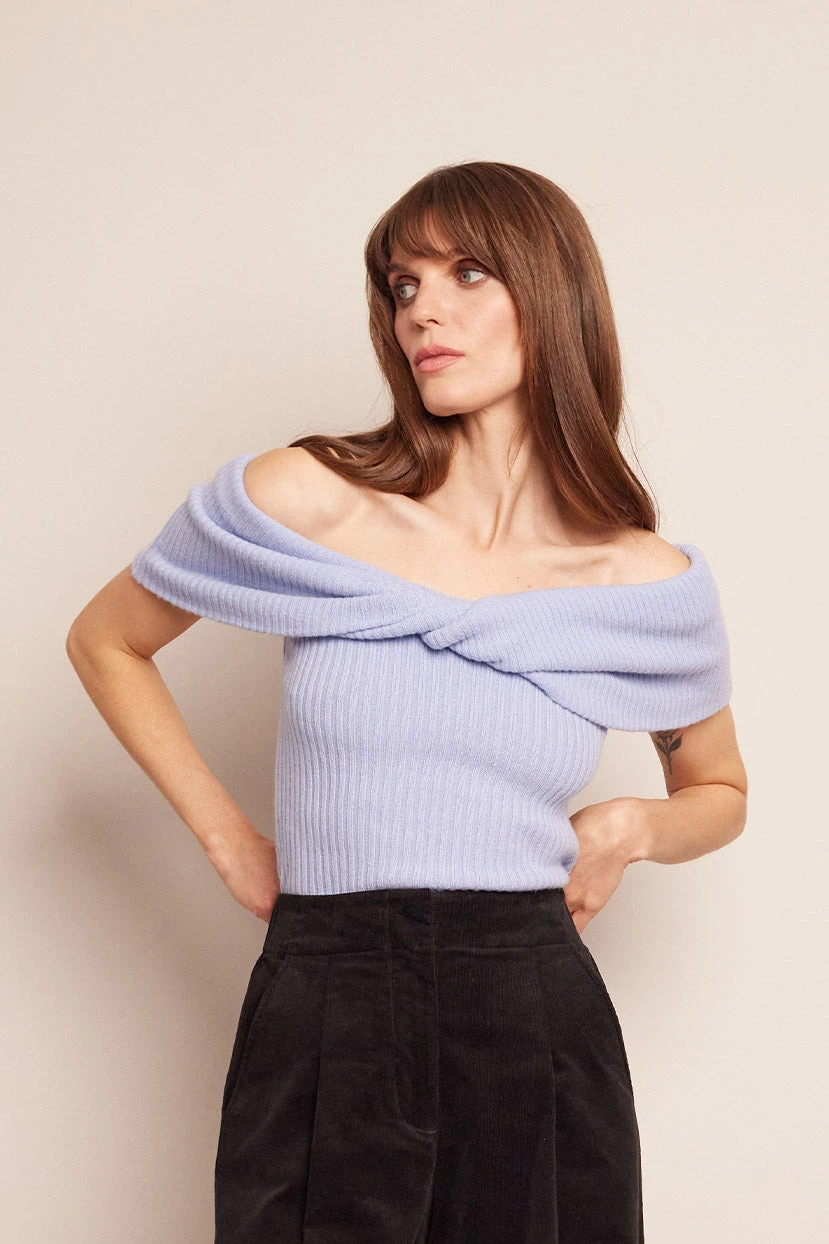 • Off the shoulder twist neck