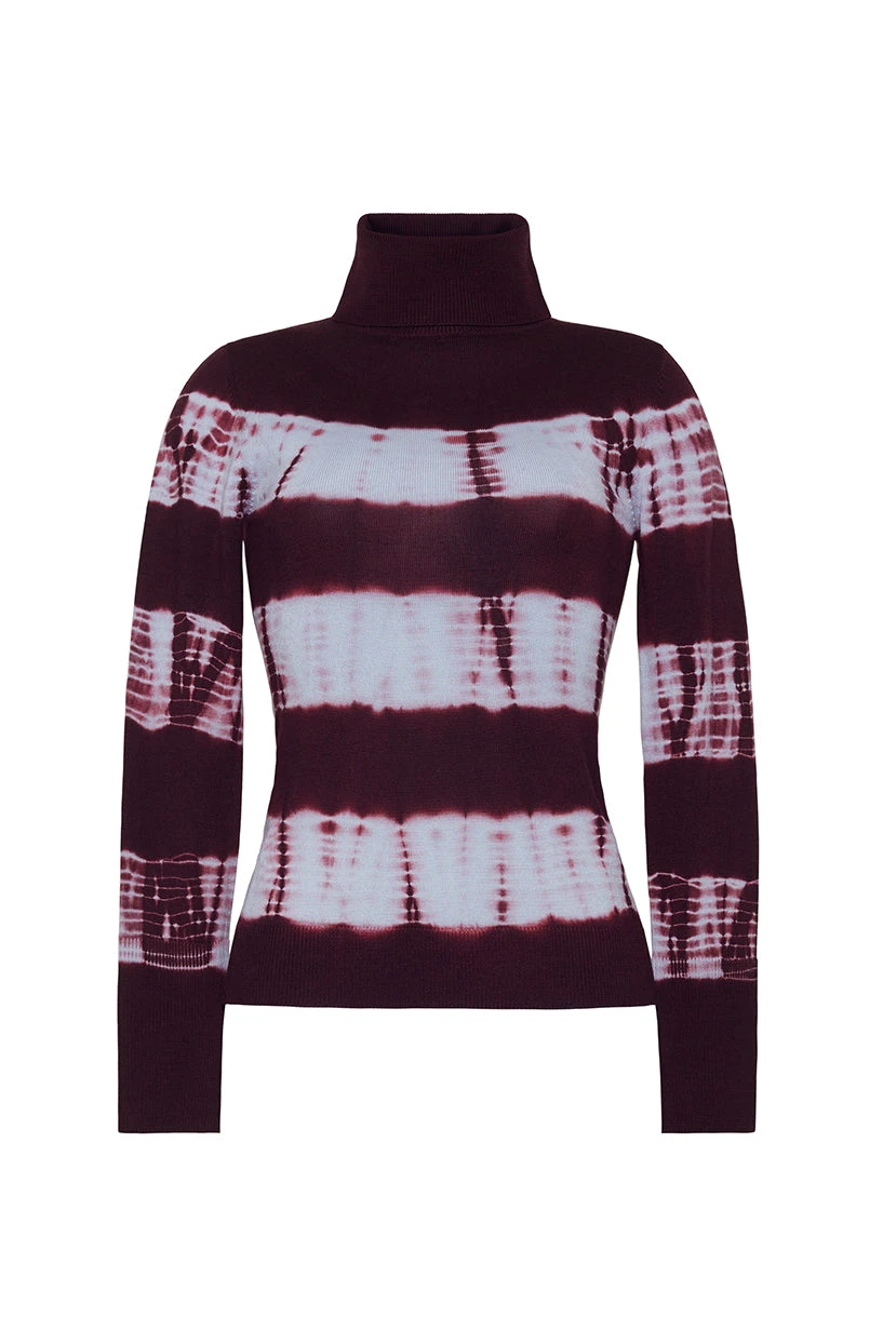 • Fitted long sleeve turtleneck with hand tie-dyed novelty knit