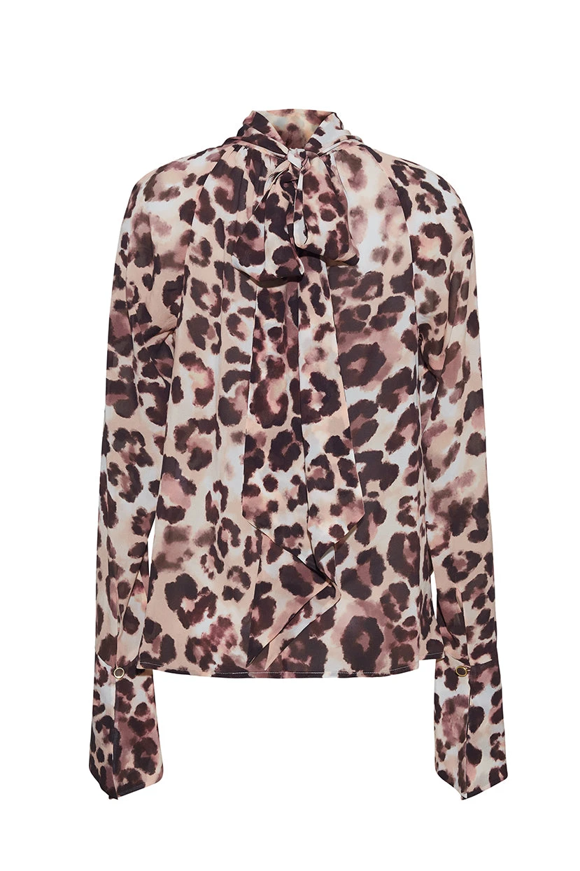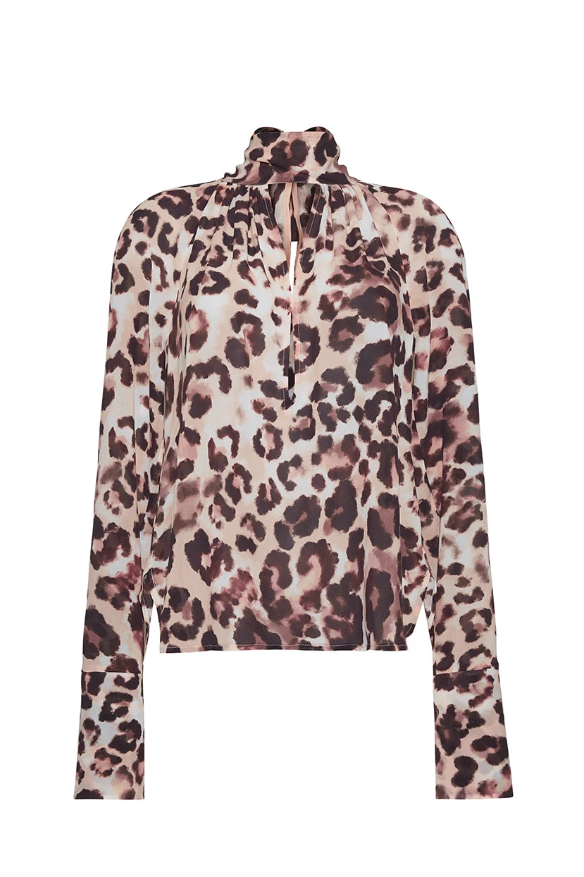• Mockneck, longsleeve, loose fitted blouse with self-ties at front